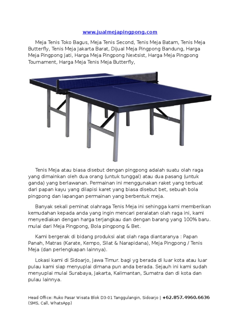 Bat/bed tenis meja butterfly set isi 2 bonus tiang net +bola+tasrp70.000: Tegalrejo, yogyakarta kota 27 jun. Kami jual meja ping pong dengan spesifikasi sebagai berikut : Beberapa hal yang perlu diperhatikan untuk anda semuanya ketika memilih meja tenis adalah sebagai berikut : Kali ini kita akan membahas salah satu kayu yang cukup populer penggunanya di dunia tenis.