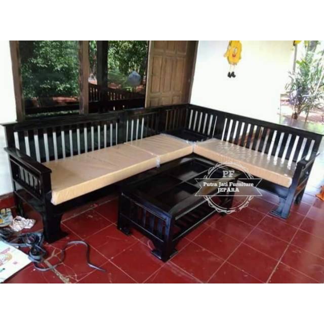 Harga kursi tamu sudut l ruang sempit mawar kayu jati.